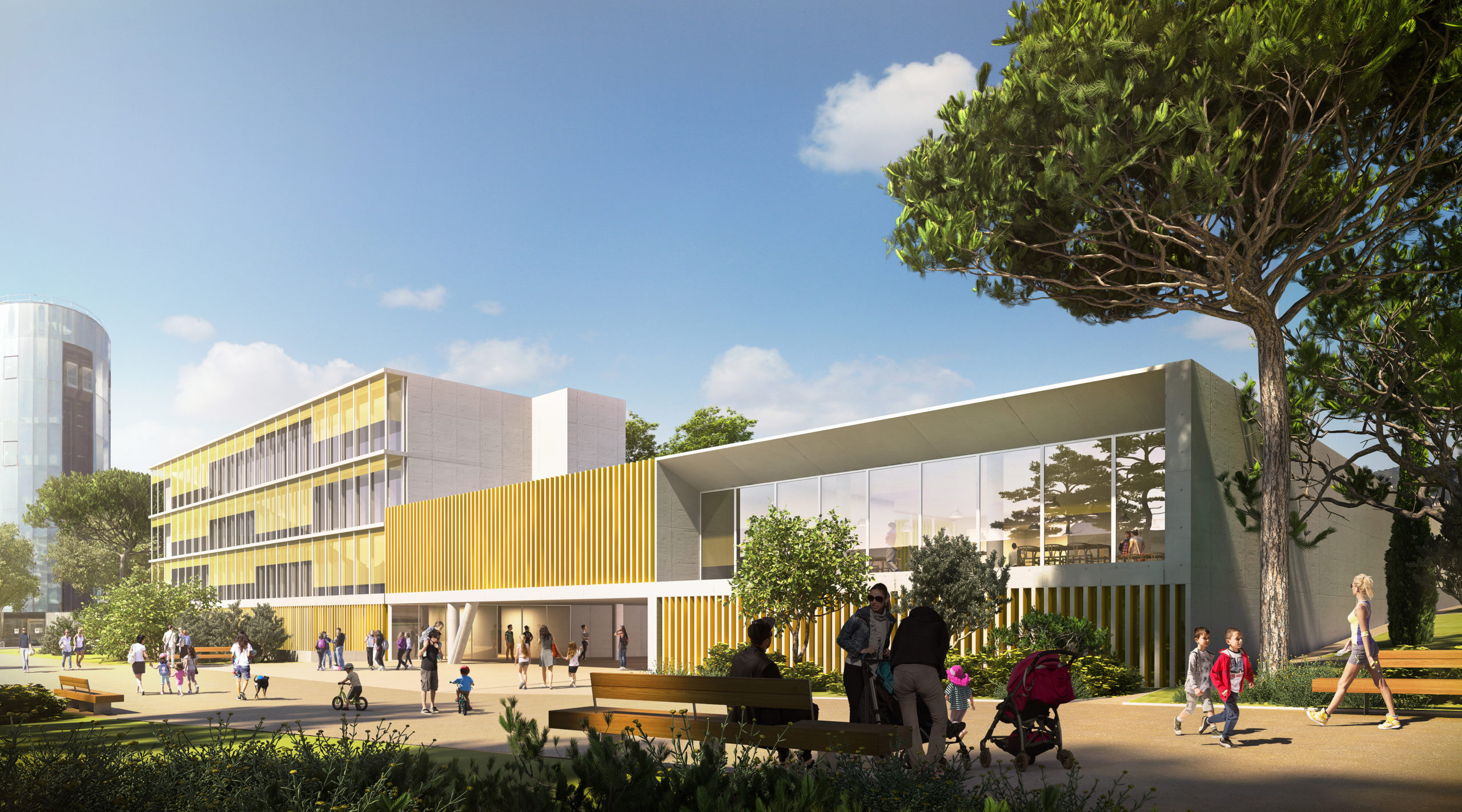 - Au contact des parcs, LE BÂTIMENT FORME LA LIMITE. Les cours de récréation sont au cœur du projet, à l’abri des regards et des risques de l’espace urbain.